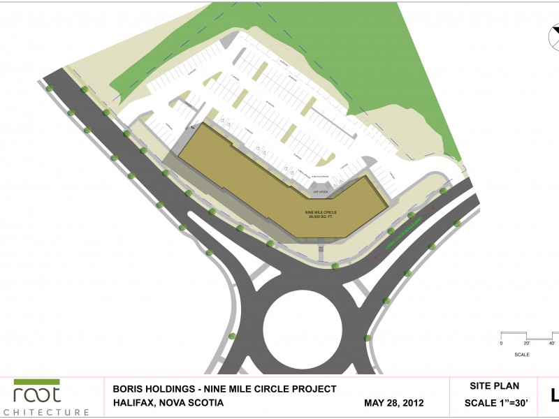 This project is a two storey 42,000 sq ft building with ground floor retail/dining and second floor commercial. The base building is a concrete ’tilt-up’ design with brick veneer cladding. The design is intended to create a human scale at the front facade and promote a ‘Village’ atmosphere. Construction has begun and this will be our first Building permit in the firms short history.