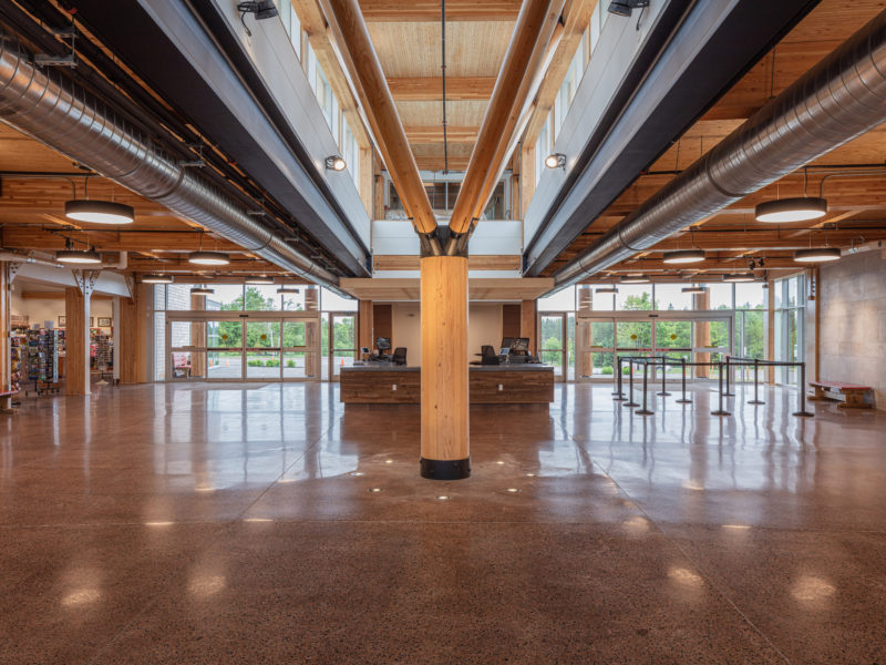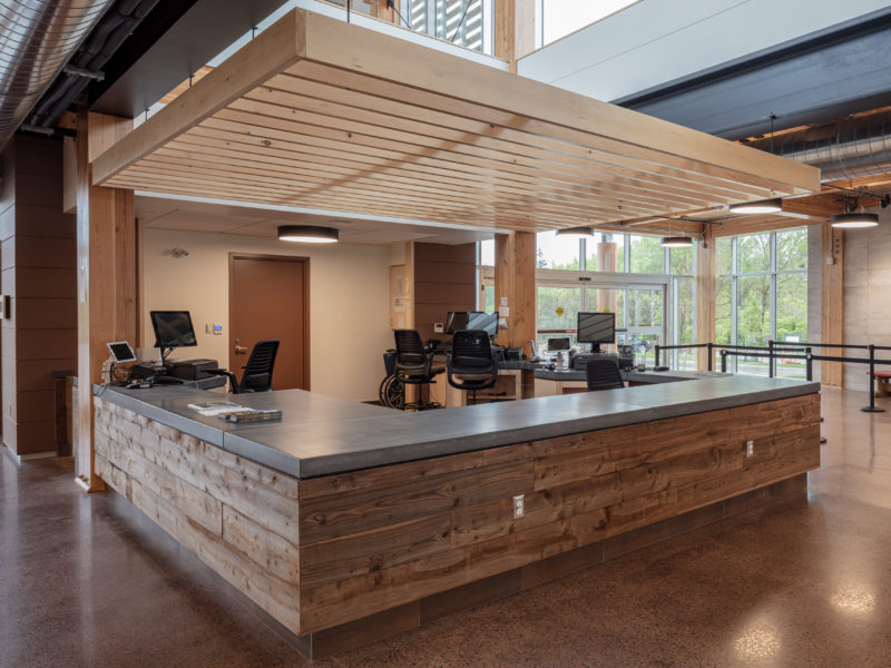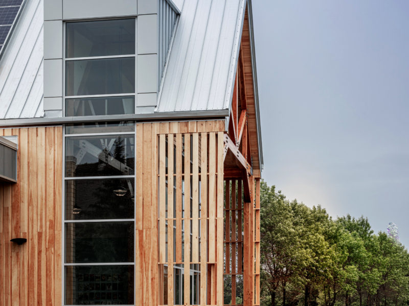 The Building is pursuing LEED Gold and special attention has been paid to the use of local materials. The building will be 100% powered by Renewable Energy through a combination of Photovoltaic panels on the roof and Green Power purchasing. Overall heating/cooling is being reduced by 41% and natural daylighting is used throughout.